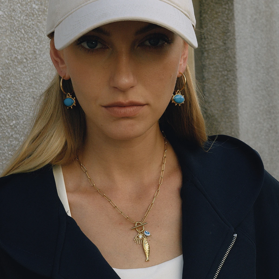 Lucky Blue Turquoise Evil Eye Cuff Earrings – 18K Gold Plated