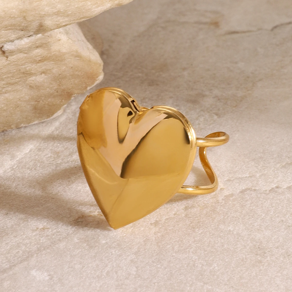 An 18K gold-plated stainless steel heart locket ring, waterproof, anti-allergic, and perfect for keeping memories close in style.
