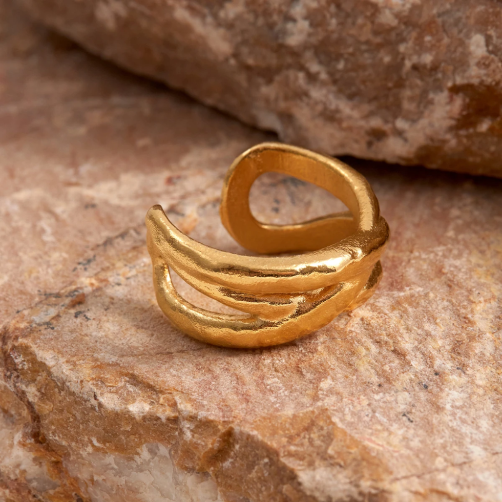 An 18K gold-plated stainless steel wrap skeleton ring, minimalist, textured, and perfect for stacking or daily wear.