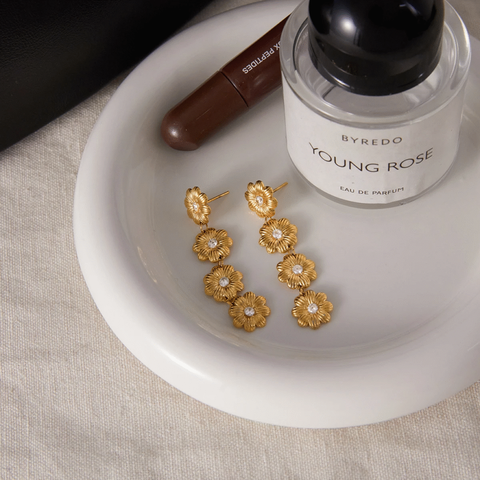 Romantic Zircon Daisy Flower Drop Earrings – 18K Gold PVD Plated